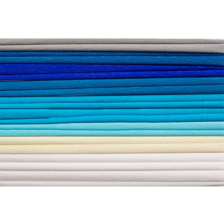 W opakowaniu znajduje się 8 starannie dobranych kolorów w niebieskiej tonacji, idealnych do tworzenia zimowych obrazków, dekoracji i kreatywnych projektów. Wysokiej jakości bibuła marszczona pozwala na precyzyjne i efektowne wykonanie dekoracji przestrzennych.